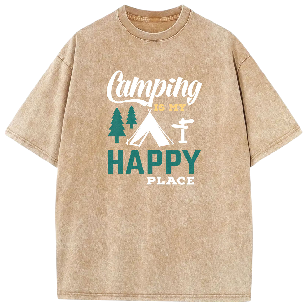 Camping Is My Happy Place Washed Tshirts Gift For Friends