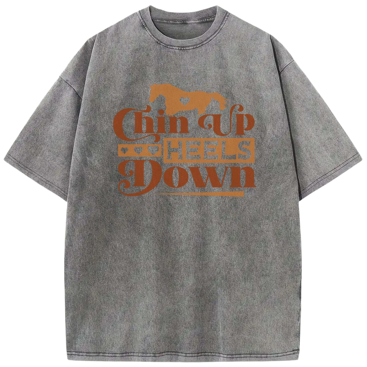 Chin Up Heels Down Washed Tshirts Gift For Friends
