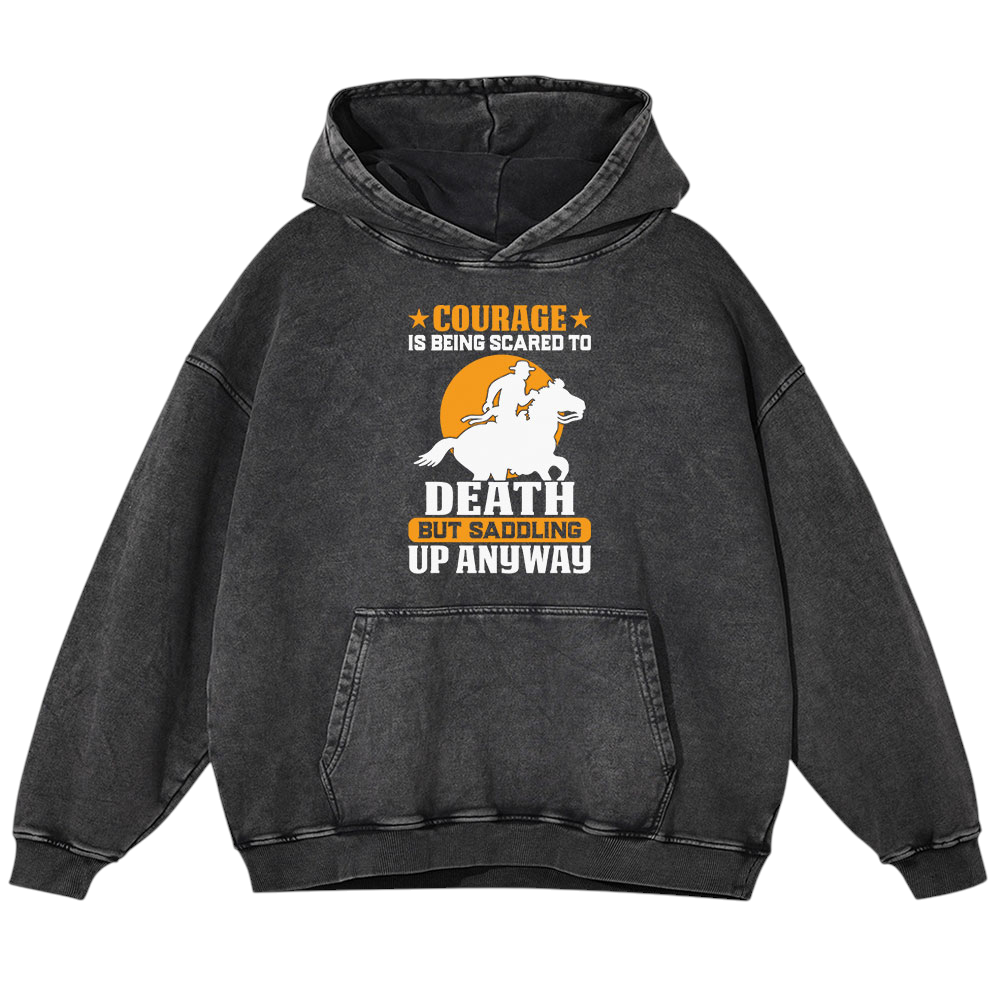 Courage Is Being Scared To Death Washed Pullover Hoodie Gift For Friends