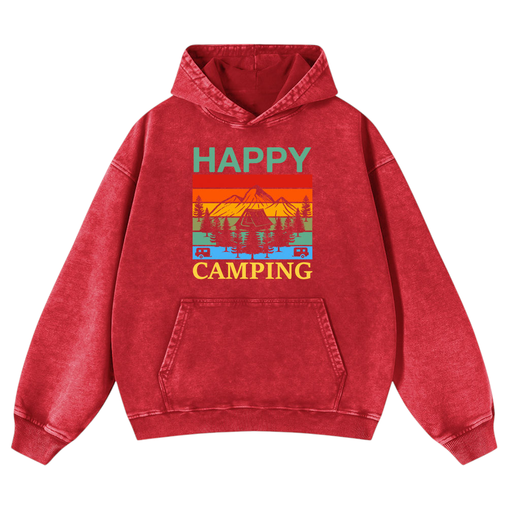 Happy Camping Washed Pullover Hoodie Gift For Friends