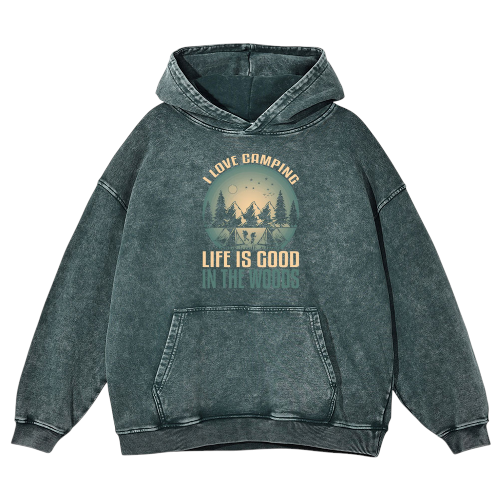 I Love Camping Life Is Good In The Woods Washed Pullover Hoodie Gift For Friends