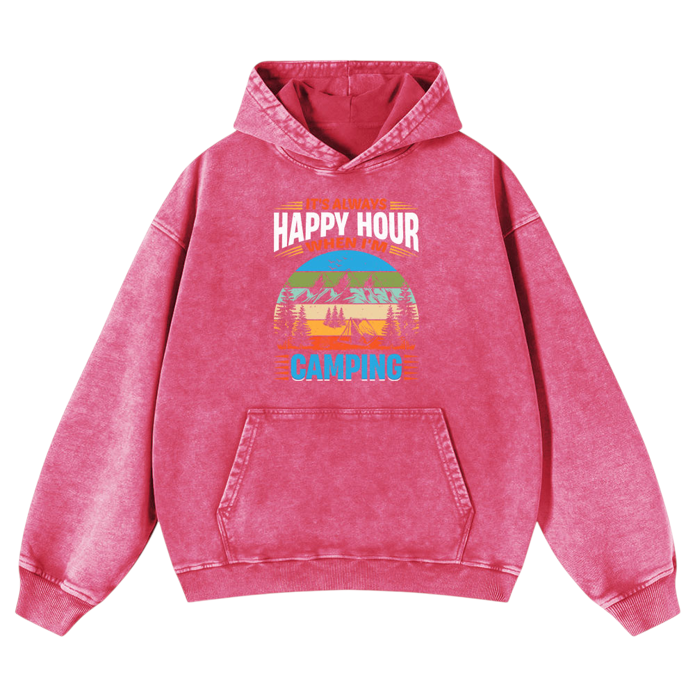 It’s Always Happy Hour When I’m Camping Washed Pullover Hoodie Gift For Friends