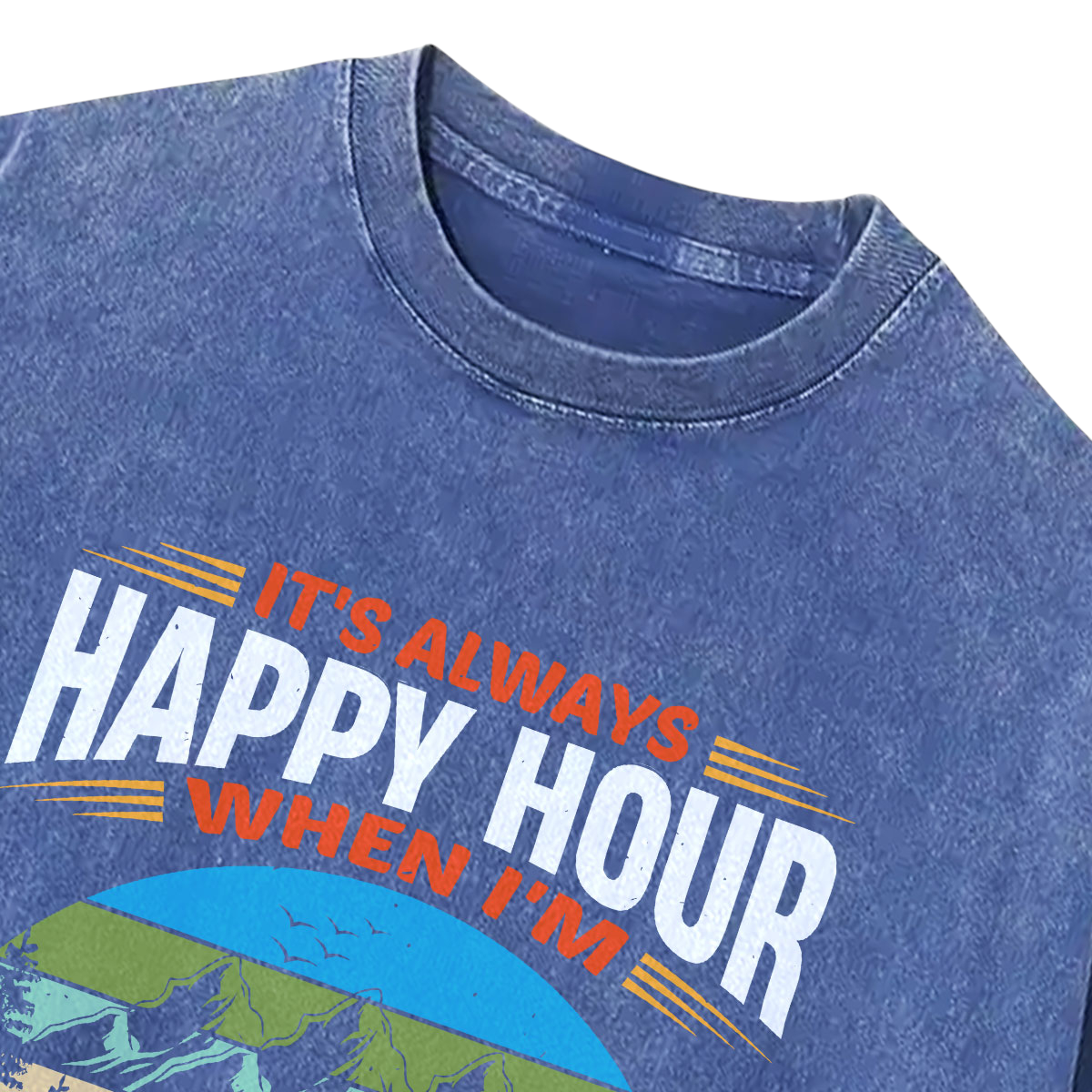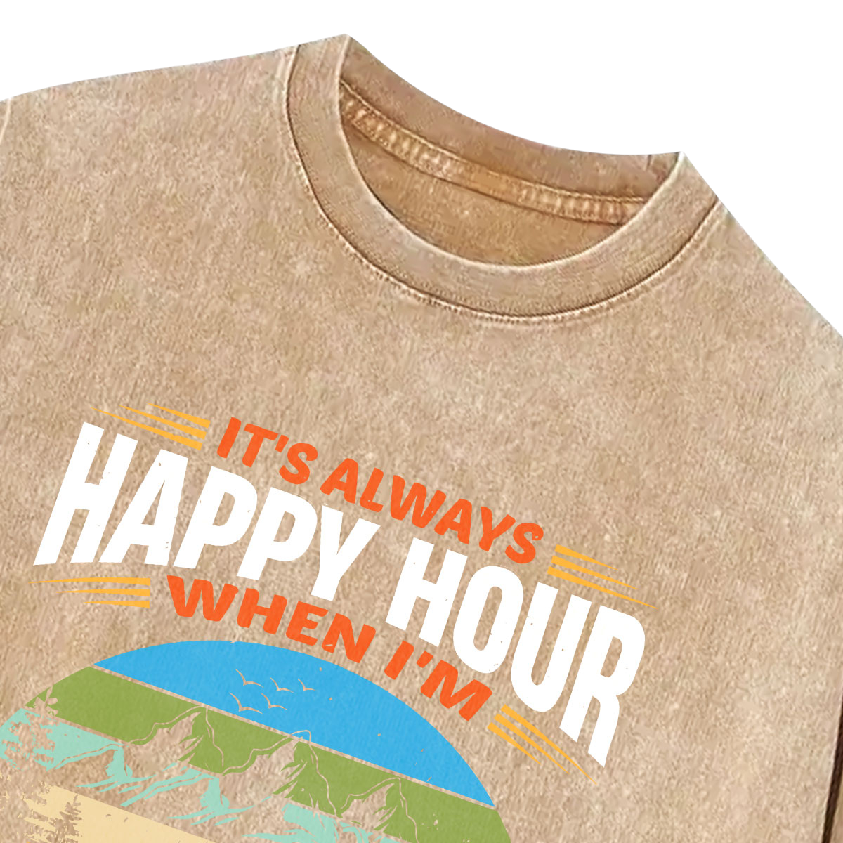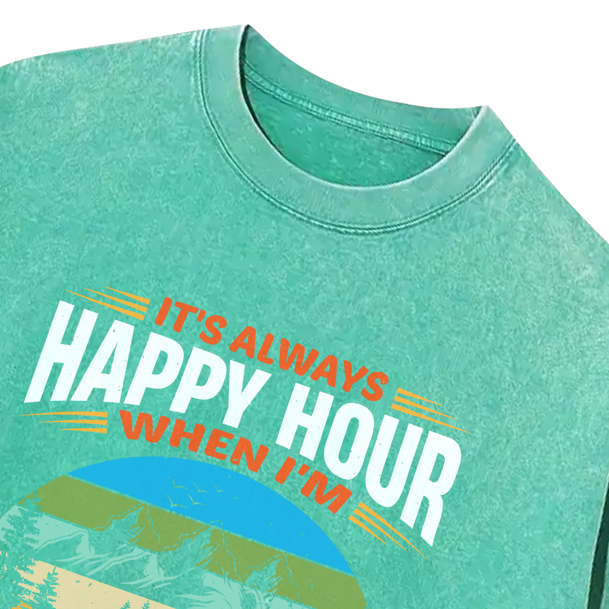 It’s Always Happy Hour When I’m Camping Washed Tshirts Gift For Friends