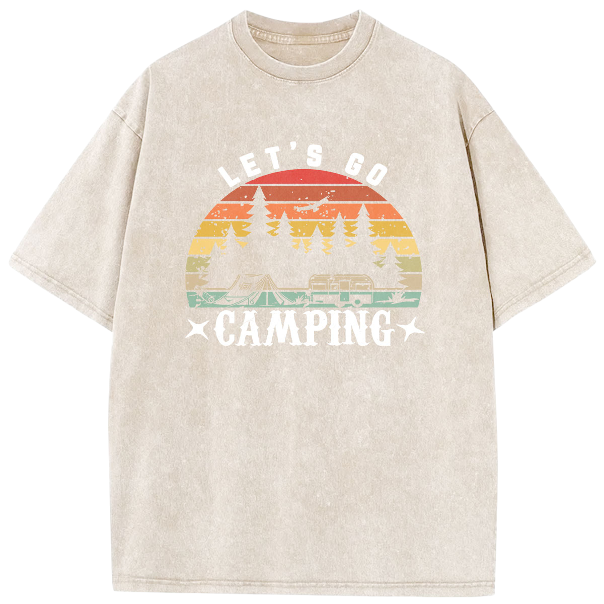 Let’s Go Camping Washed Tshirts Gift For Friends