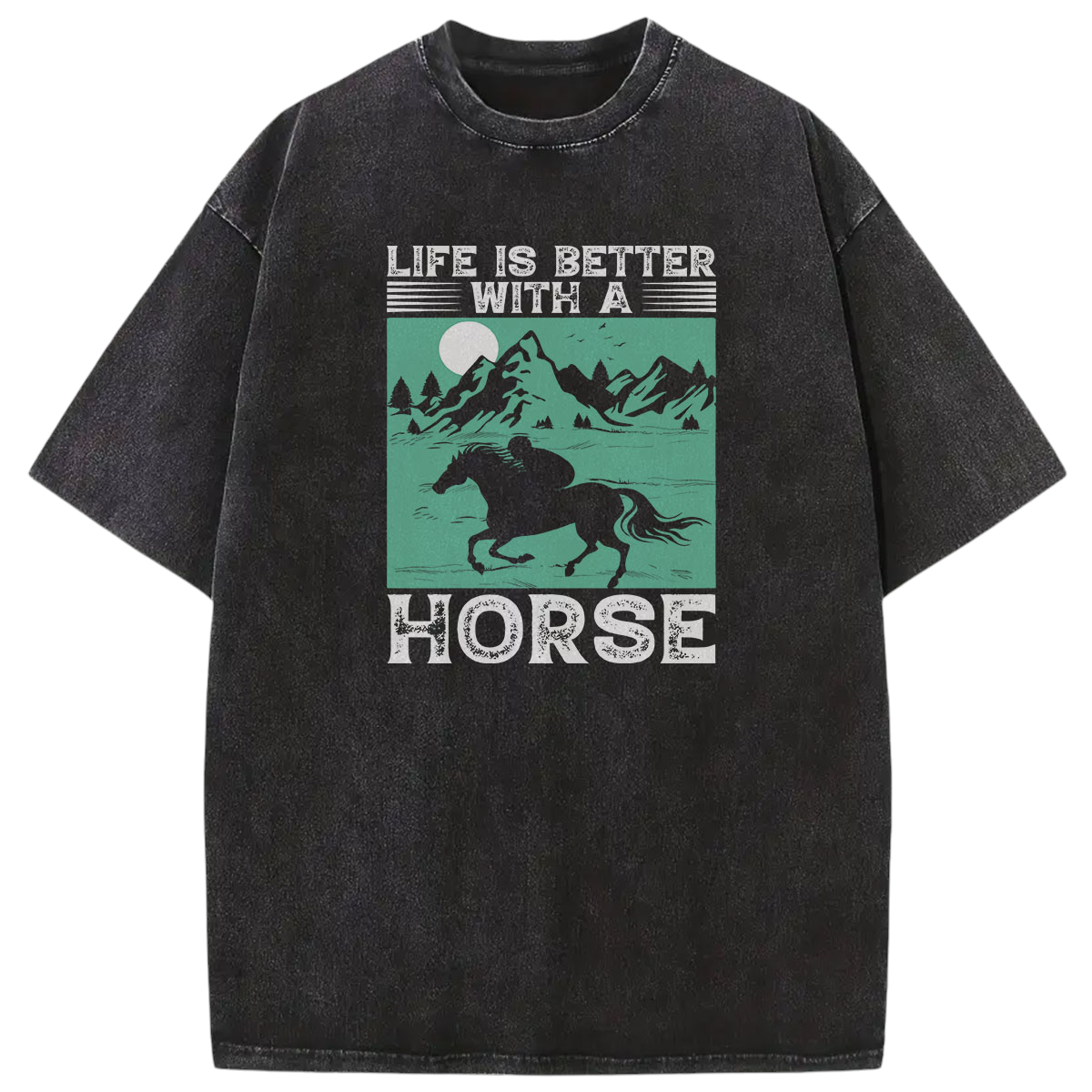 Life Is Bestter With A Horse Vintage Washed Tshirts Gift For Friends