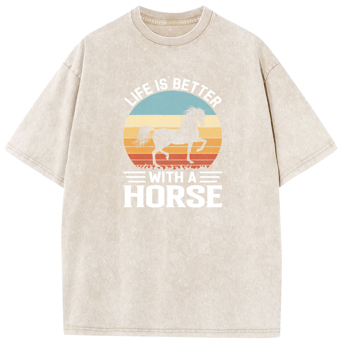 Life Is Bestter With A Horse Washed Tshirts Gift For Friends