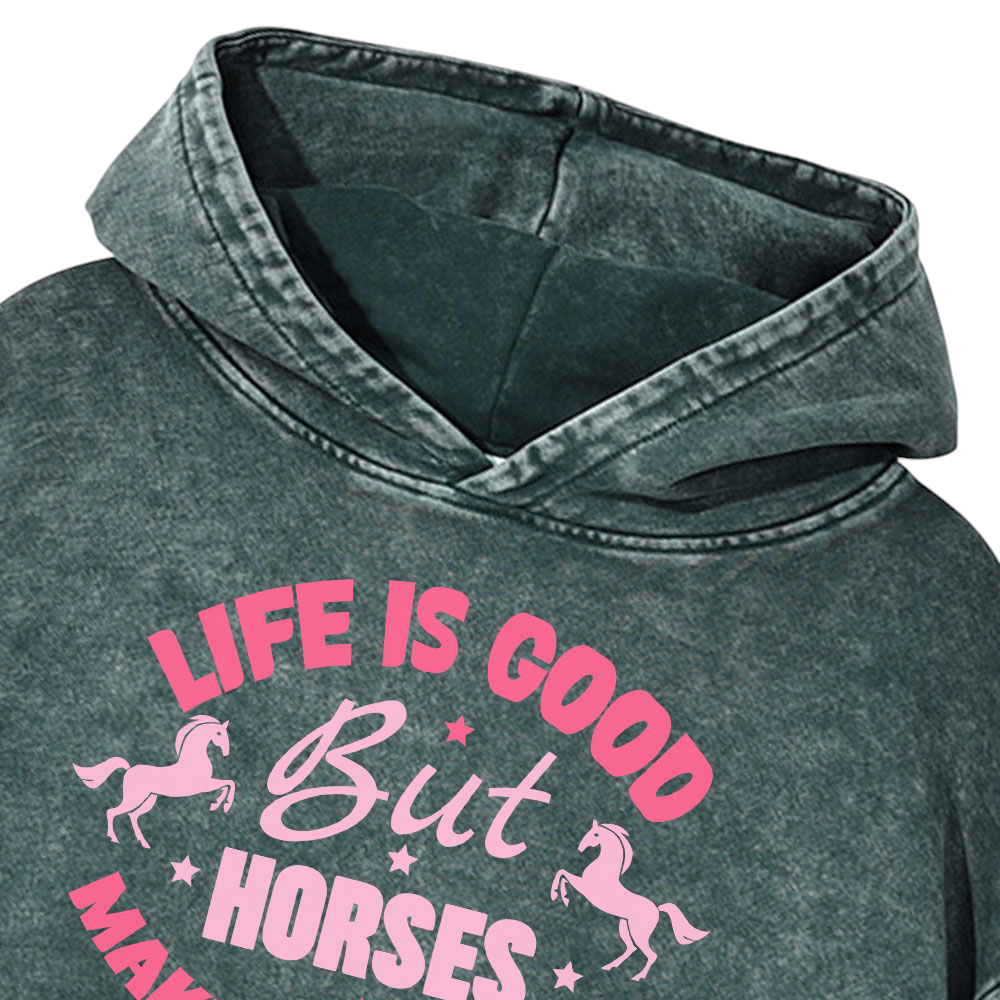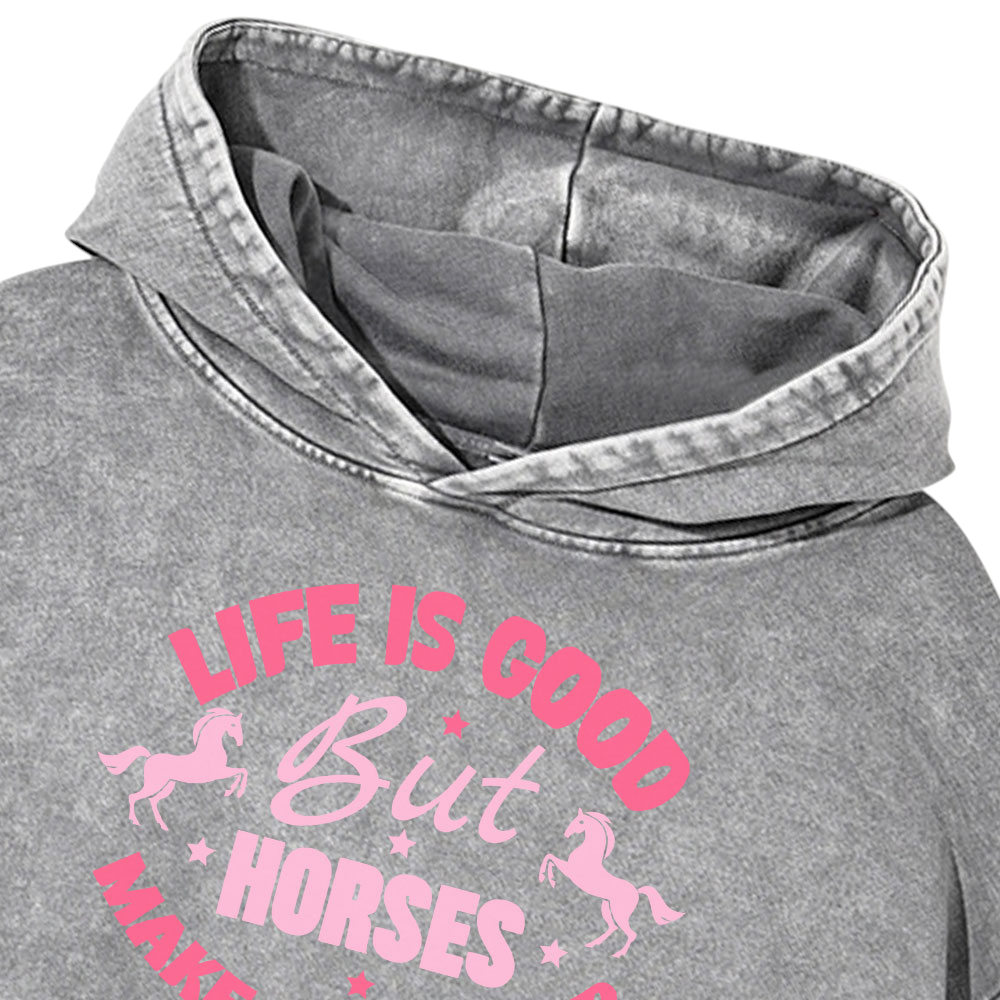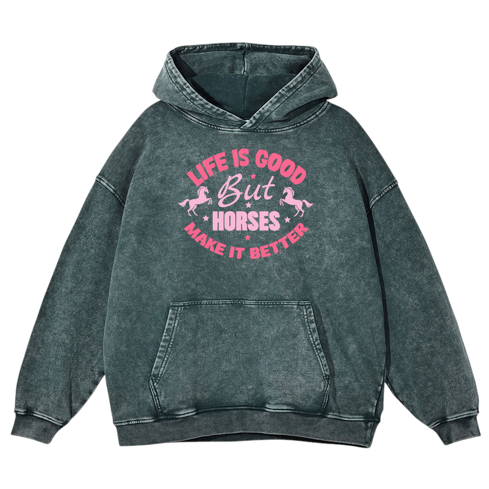 Life Is Good But Horses Make It Better Washed Pullover Hoodie Gift For Friends