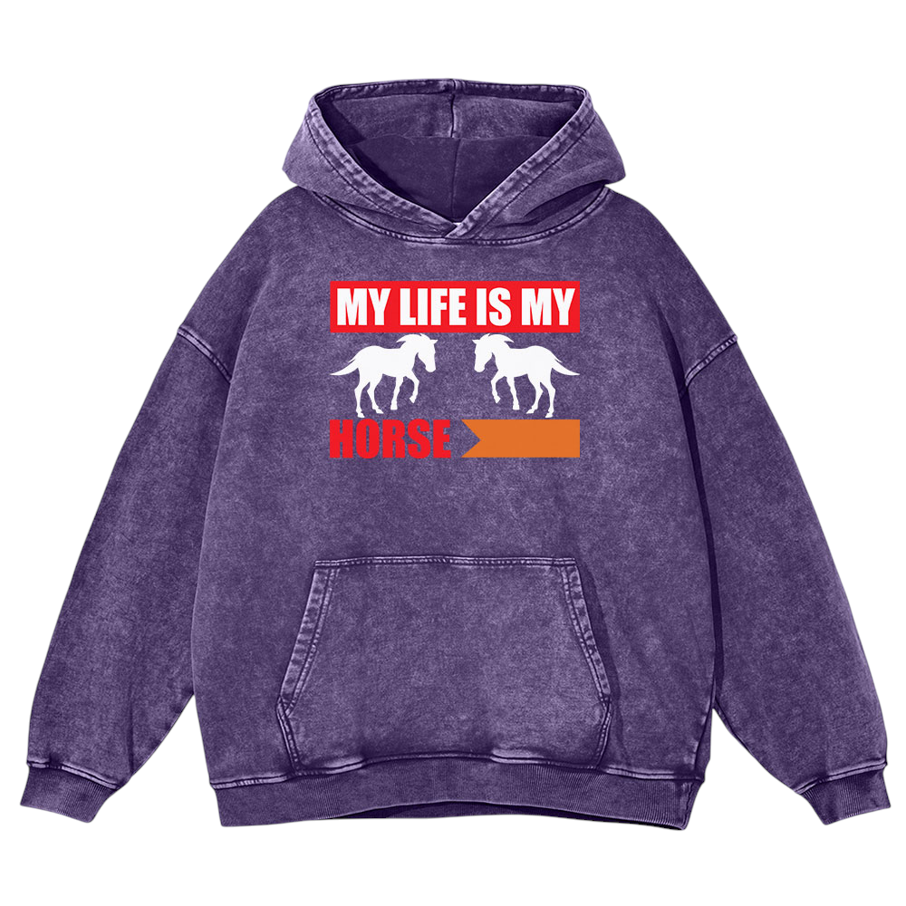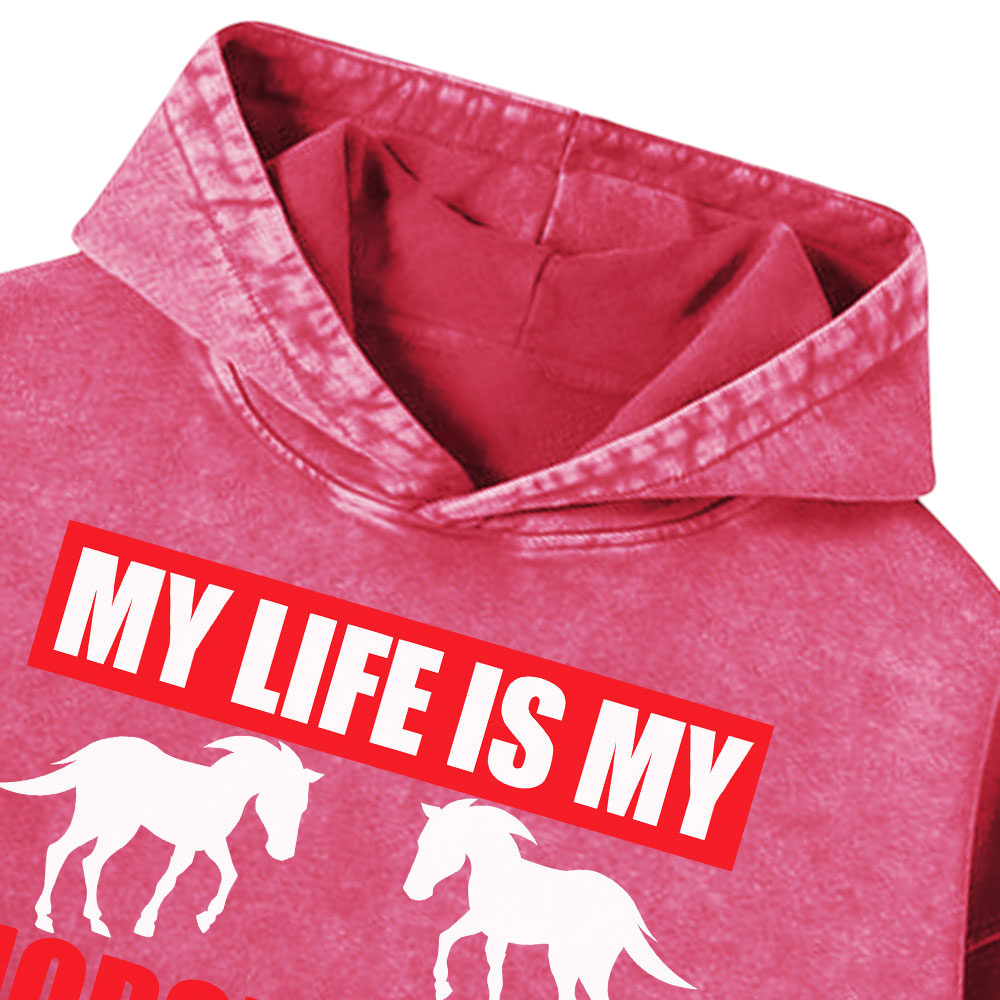My Life Is My Horse Washed Pullover Hoodie Gift For Friends